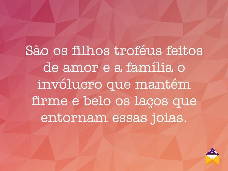 São os filhos troféus feitos de amor e a famÃlia o invólucro que mantém firme e belo os laços que entornam essas joias.
