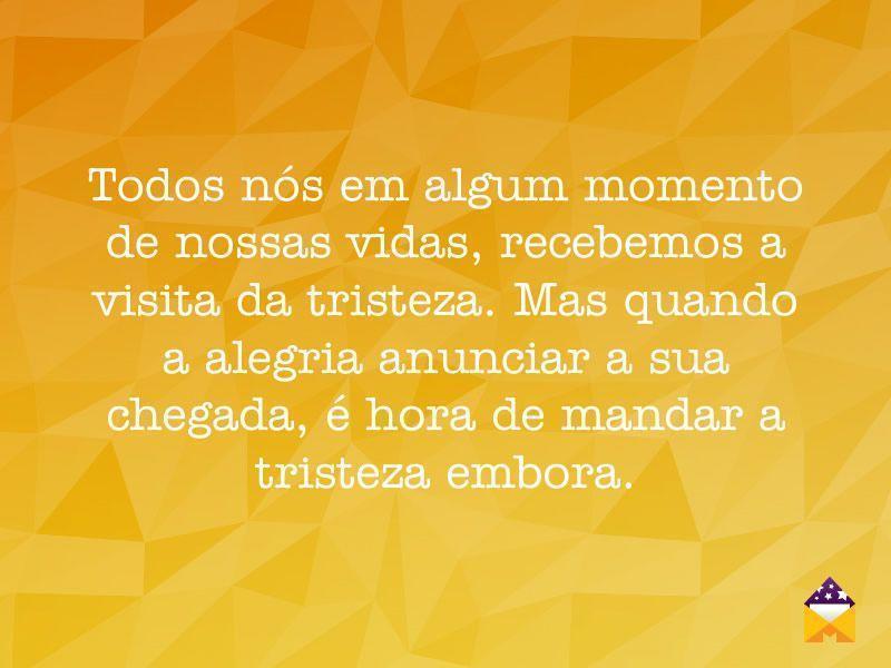 Todos nós em algum momento de nossas vidas, recebemos a visita da tristeza. Mas quando a alegria anunciar a sua chegada, é hora de mandar a tristeza embora.