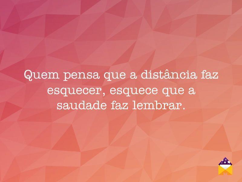 Quem pensa que a distância faz esquecer, esquece que a saudade faz lembrar.