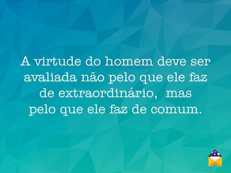 A virtude do homem deve ser avaliada não pelo que ele faz de extraordinário,  mas pelo que ele faz de comum.