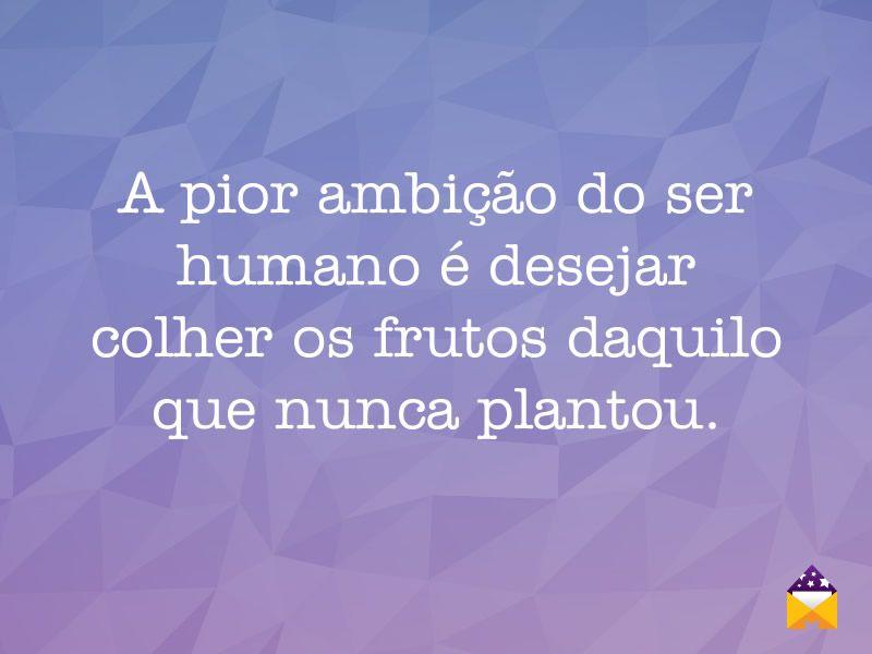 A pior ambição do ser humano é desejar colher os frutos daquilo que nunca plantou.