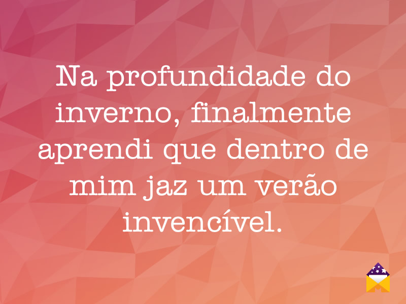 Na profundidade do inverno, finalmente aprendi que dentro de mim jaz um verão invencÃvel.