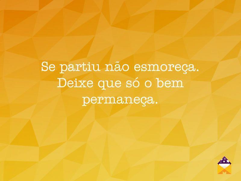 Se partiu não esmoreça. Deixe que só o bem permaneça.